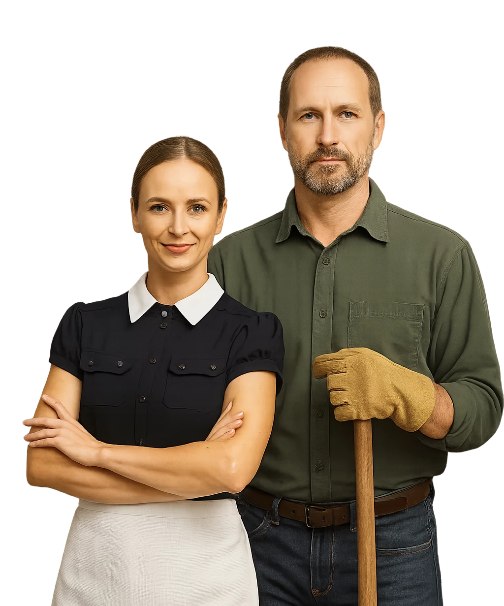 A domestic couple is the perfect solution for large homes, estates, and villas. These professionals manage the property and household comprehensively, without constant supervision from the owners.